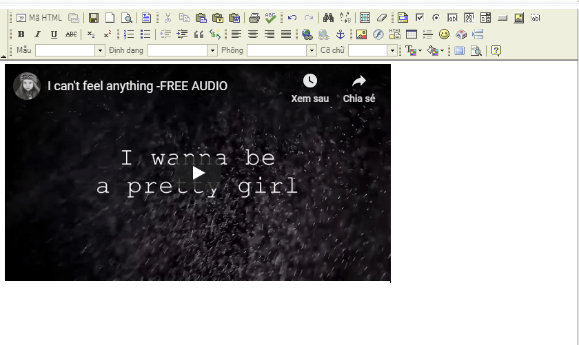Chọn vị trí cần chèn video -> click nút HTML trên thanh công cụ