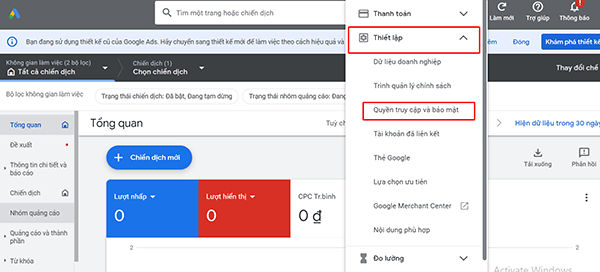 Từ một tài khoản quảng cáo Google ads có thể thêm tài khoản người dùng khác để cùng quản lý tài khoản.