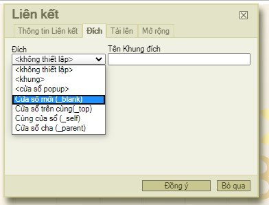 Trường hợp muốn back link ra tab/ trang khác google thì chọn tab ĐÍCH -> Sổ chọn cửa sổ mới